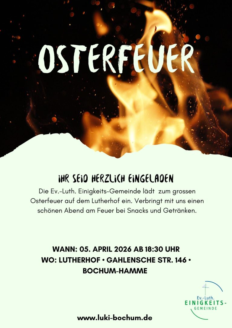 Die Ev.-Luth. Einigkeits-Gemeinde lädt zum grossen Osterfeuer auf dem Lutherhof ein. Verbringt mit uns einen
