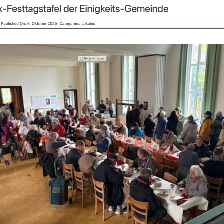 Mit ihrer traditionellen „Erntedank-Festtagstafel“ hat die Einigkeits-Gemeinde am Sonntag zahlreiche Besucherinnen und Besucher aus Bochum und Umgebung angezogen. Nach einem festlichen Gottesdienst luden die Verantwortlichen zu einem gemeinsamen Mittagessen ein, das von frisch gebackenem Kuchen und duftenden Waffeln begleitet wurde.